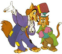 Renard fourbe et sournois qui tente par tous les moyens de détourner Pinocchio du droit chemin. Il le livrera d'abord à Stromboli puis au cocher qui l'emmènera, avec les autres mauvais garçons dans l' "Île des Plaisirs".